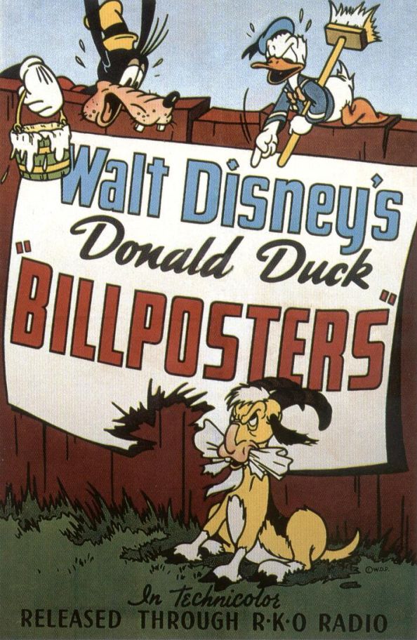 Die Plakatkleber Donald und Goofy haben Ärger mit Windmühlenflügeln und einer plakatfressenden Ziege.
