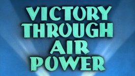 Später geht es in Victory Through Air Power um die aktuelle Kriegslage. Amerikanische Rüstungsfabriken werden als pulsierendes Herz dargestellt, die blau und rot leuchten. Nachtaufnahmen erlauben es den Zeichnern, mit wenigen Details auszukommen. Von diesem "Herz" nehmen die Transportwege ihren Ausgang, vorgestellt als Kurven einer Produktionsstatistik. Ganze Ströme von Panzern, Schiffen und Flugzeugen gleiten dahin. Alle Wege enden in einer Flasche, aus deren Hals sich bedächtig langsame Transportschiffe herausquetschen. Es folgt eine Landkarte, die die USA als riesiges Euter zeigt. Über sehr lange Wege verteilt es "Milch" in alle Welt. Im Gegensatz wird auf die kurzen Nachschubwege der Achsenmächte verwiesen. Seversky kritisiert diese Art der Kriegsführung als "Verschwendung von Material und Arbeit" und entwickelt ein Gegenkonzept. Gezeigt wird ein Rad, über dessen Speichen ständig Nachschub in einen äußeren Ring geführt wird. Von allen Seiten greifen "alliierte Pfeile" an, aber trotzdem bleibt das Rad letztlich in Form. Seversky schlägt vor, mit Langstreckenbomben direkt ins Zentrum des Rades zu fliegen, also Deutschland zu zerstören.